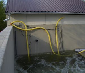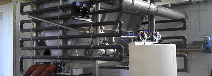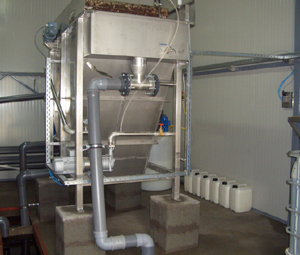 - To meet the requirements, a waste water treatment plant was built in a compact design with sieving, homogenization, flocculation, flotation, SBR-biology and sludge dewatering. Automatic operation, very low maintenance and service costs.