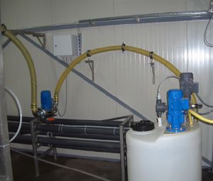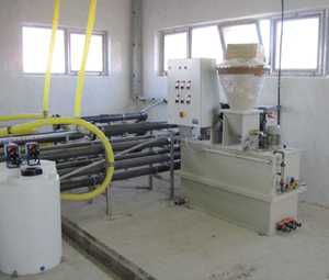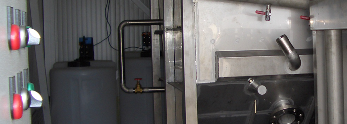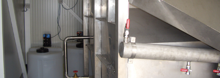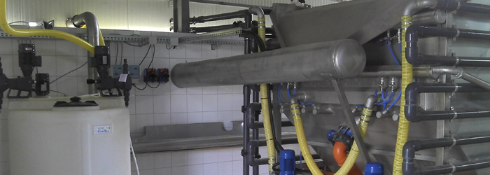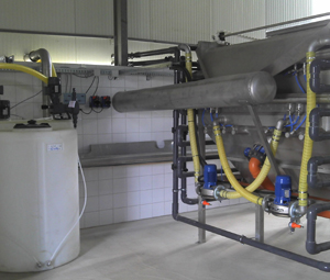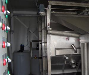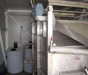 - Buffering, screening, flocculation with dosing of chemicals and pH control, flotation, sludge dewatering, fully automatic operation